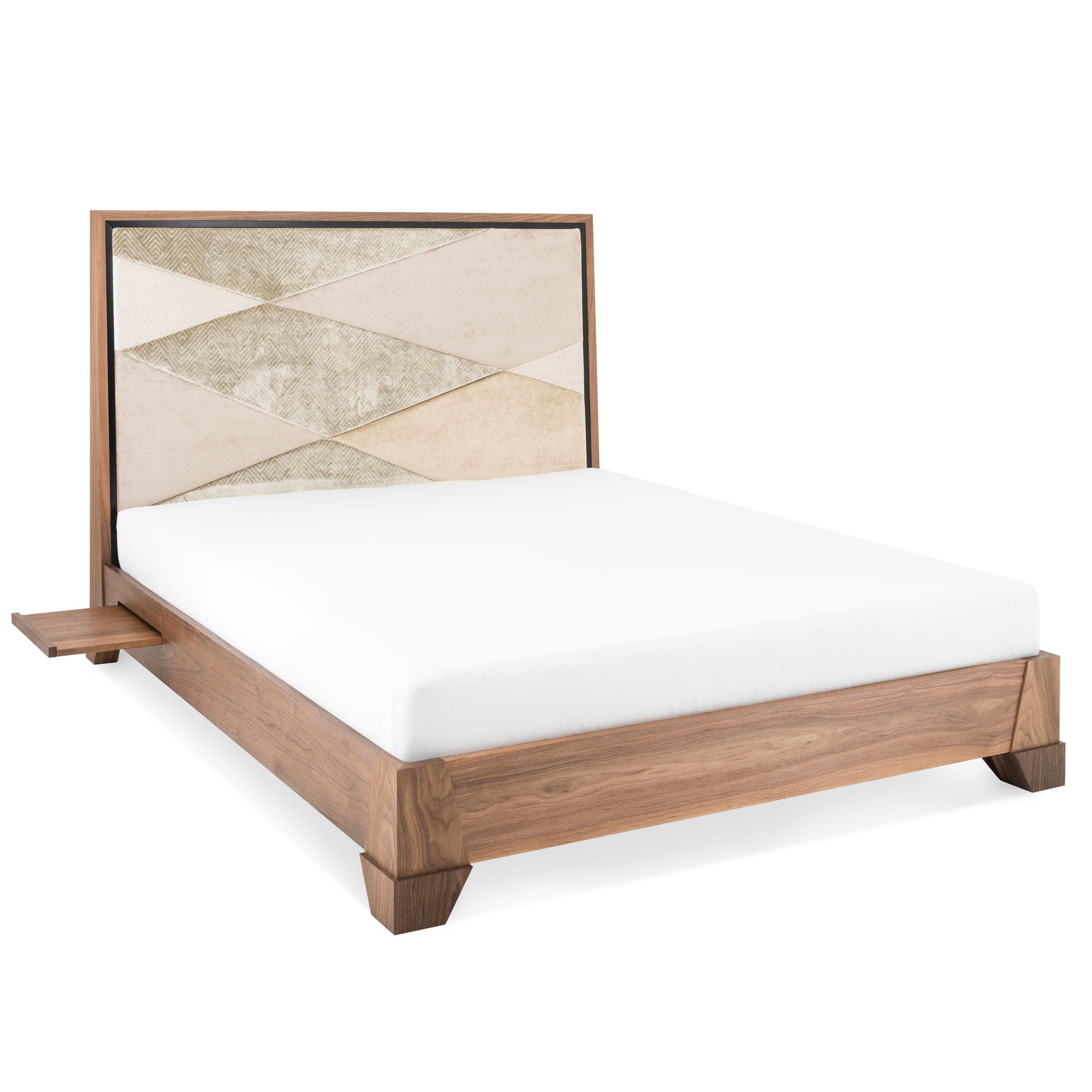 Imponujące łóżko z naturalnego drewna orzechowego inspirowane stylem Art Deco.