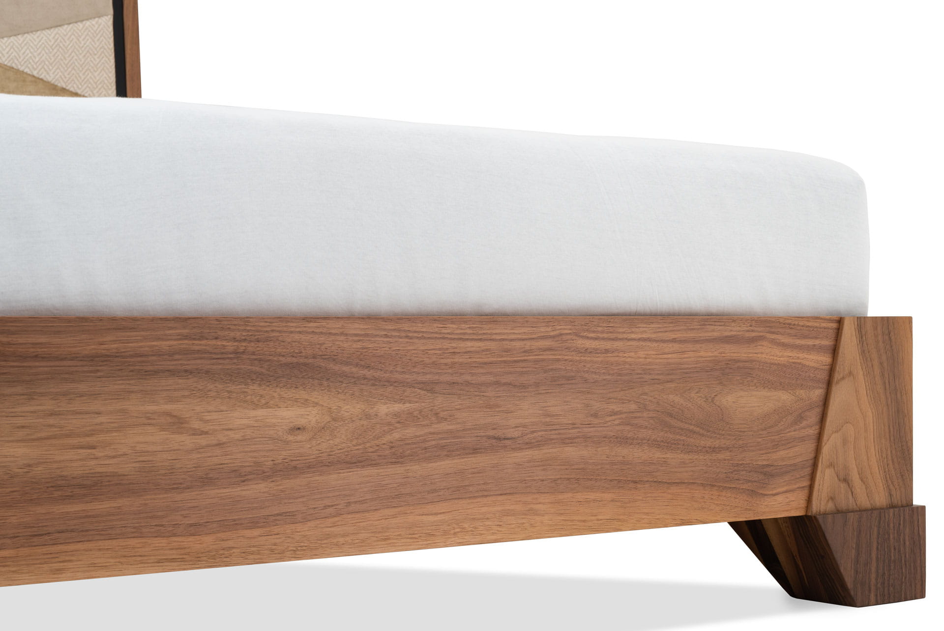 Imponujące łóżko z naturalnego drewna orzechowego inspirowane stylem Art Deco.
