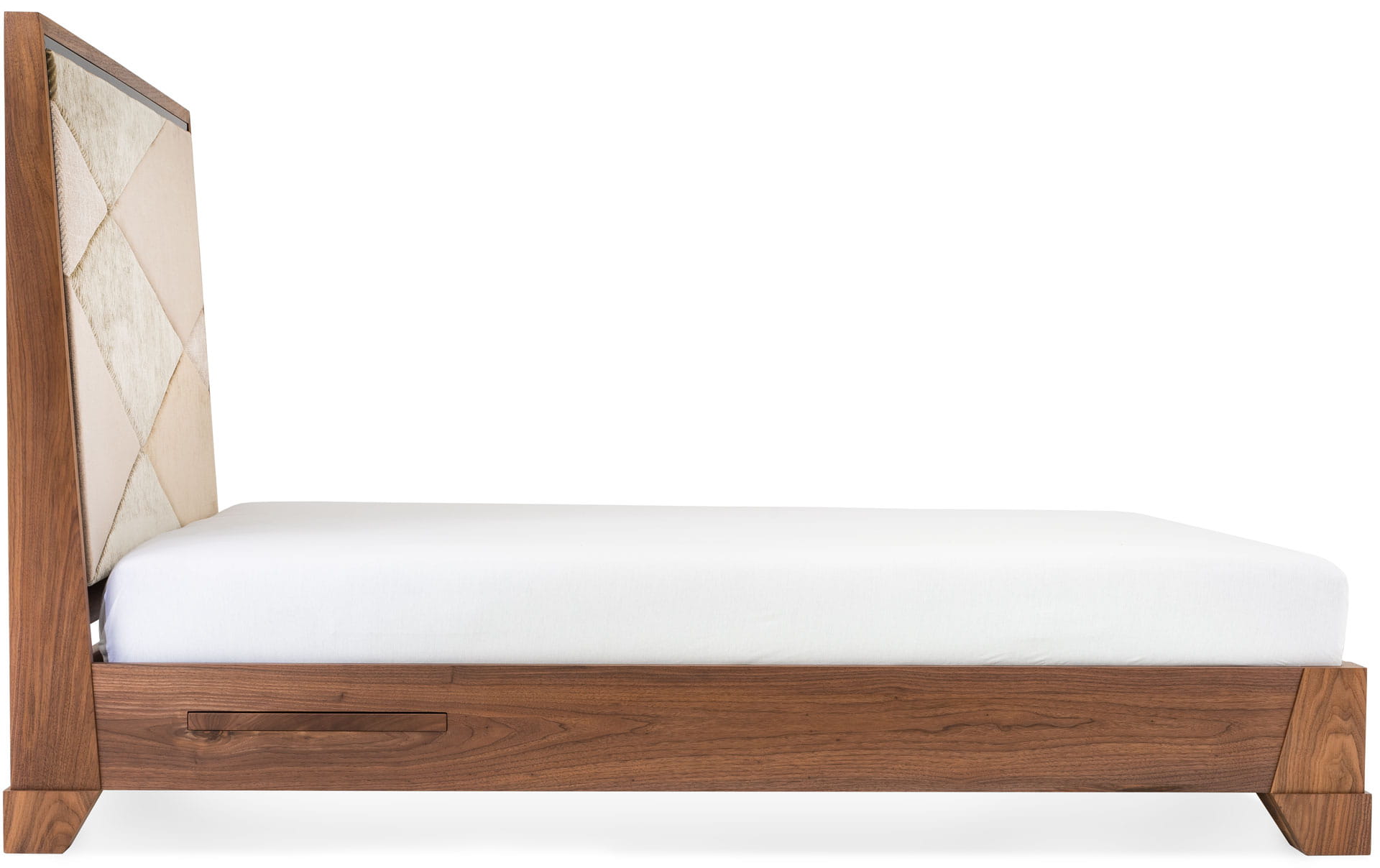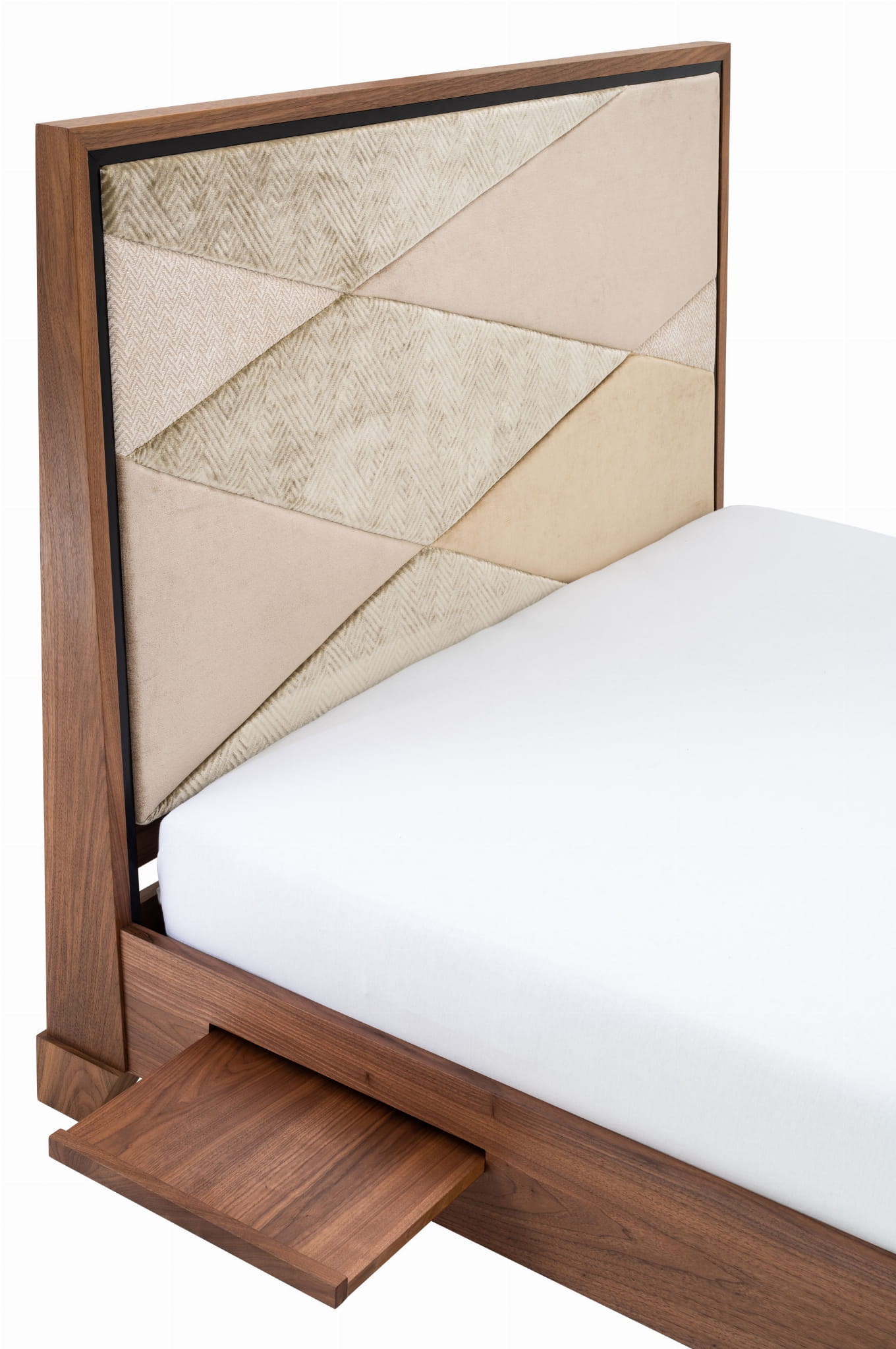 Imponujące łóżko z naturalnego drewna orzechowego inspirowane stylem Art Deco.