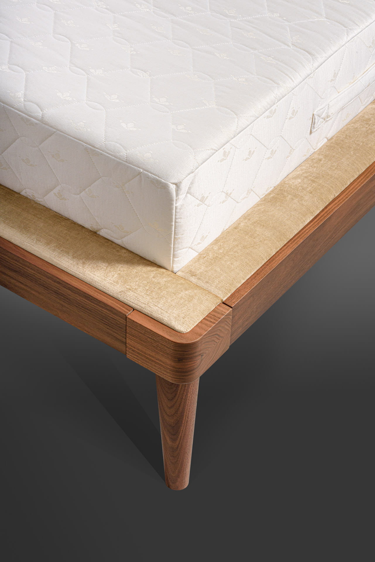 Tapicerowane boki ramy łóżka, w której znajduje się materac, idealnie współgra z zagłówkiem.
