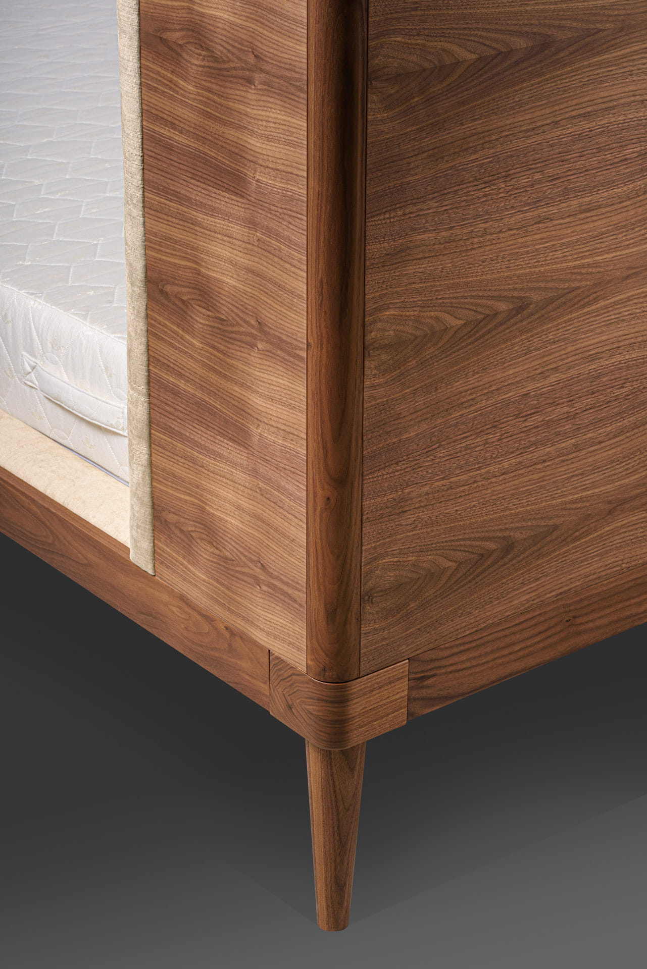 Tapicerowane boki ramy łóżka, w której znajduje się materac, idealnie współgra z zagłówkiem.
