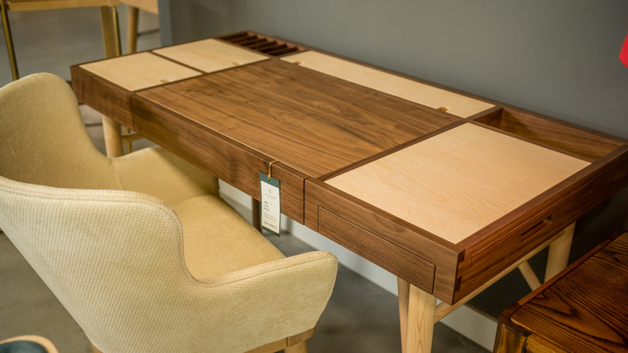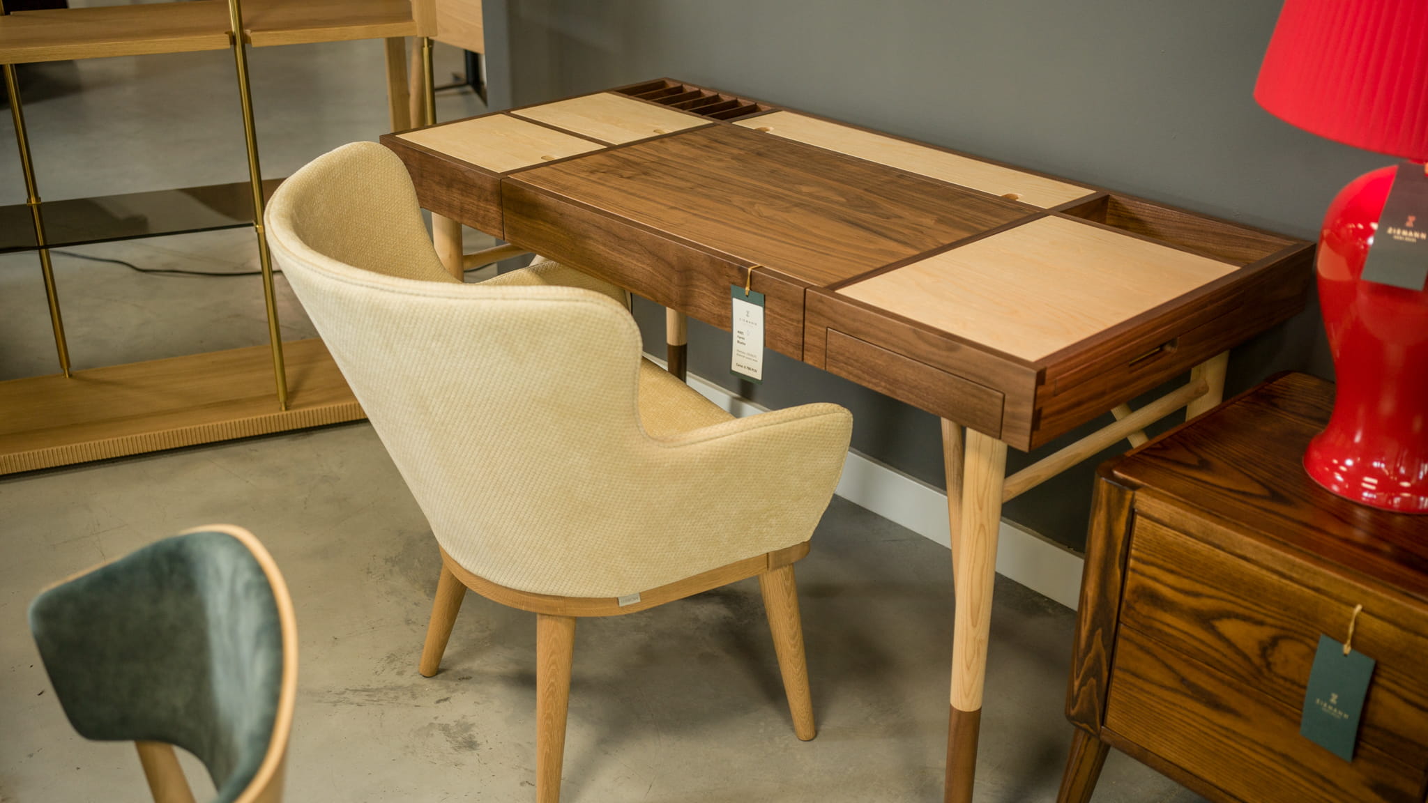 Nowoczesne krzesło z występami po bokach oparcia, inspirowany duńskim wzornictwem z lat 50. Podstawa z lekko ukośnymi, stożkowymi nogami wykonanymi z naturalnego drewna dębowego.