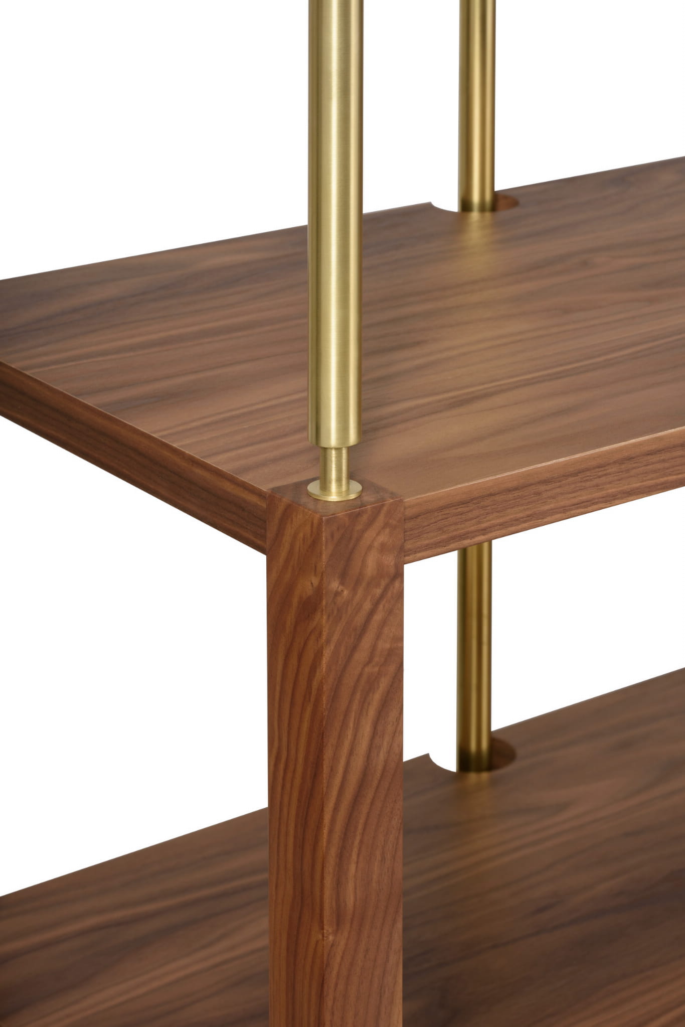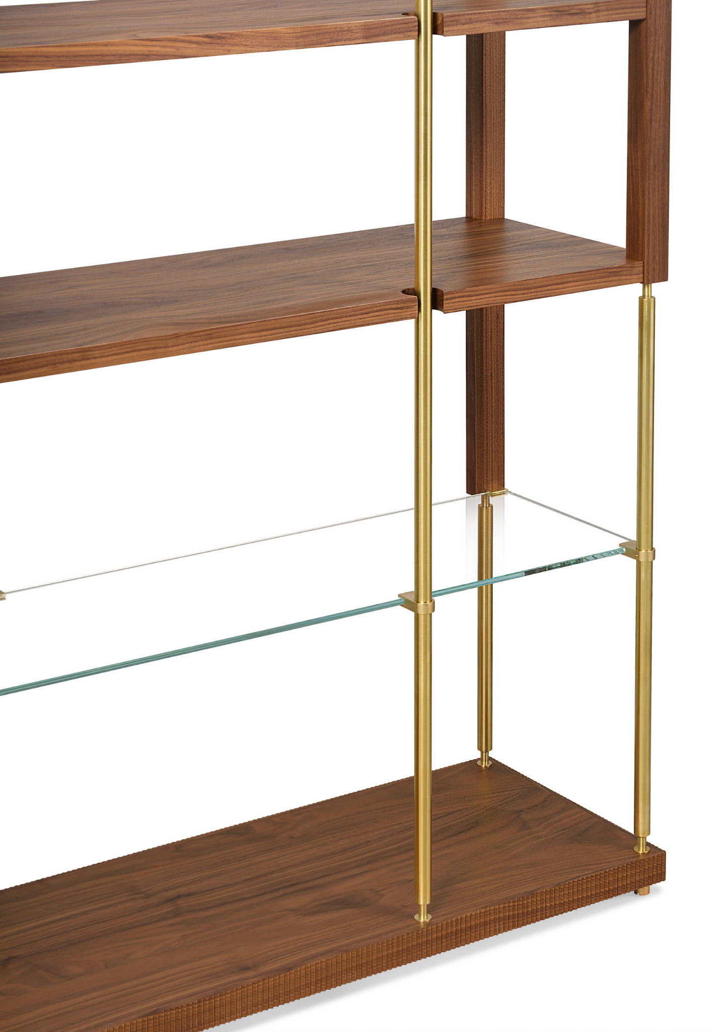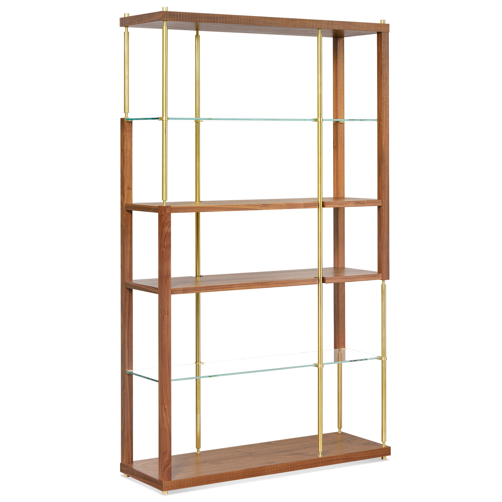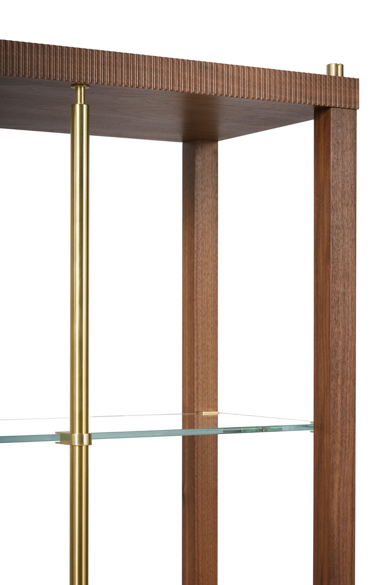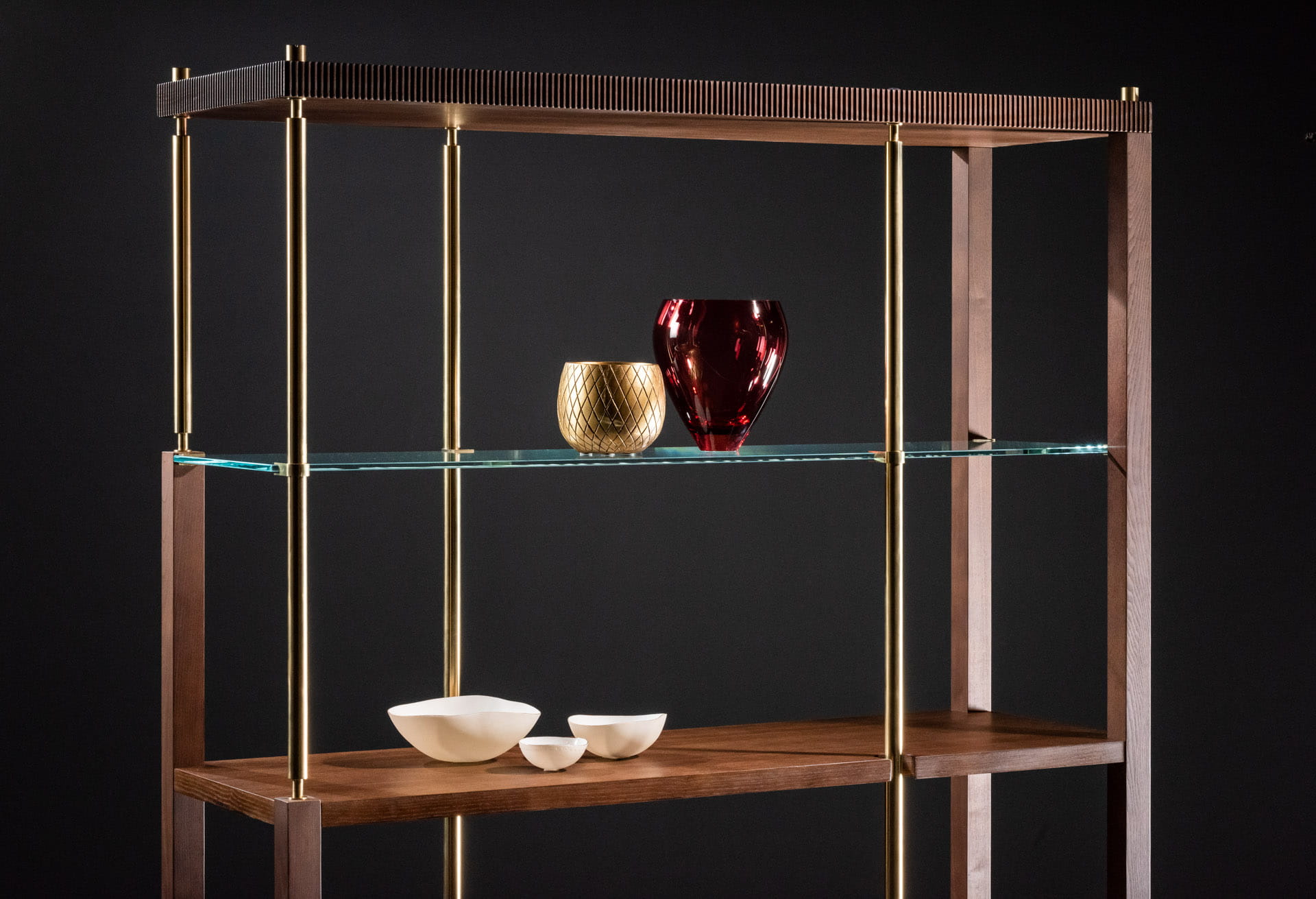 Dwie z czterech półek wykonano ze szkła, nadając lekkości meblowi i jednocześnie urozmaicając jego bryłę.