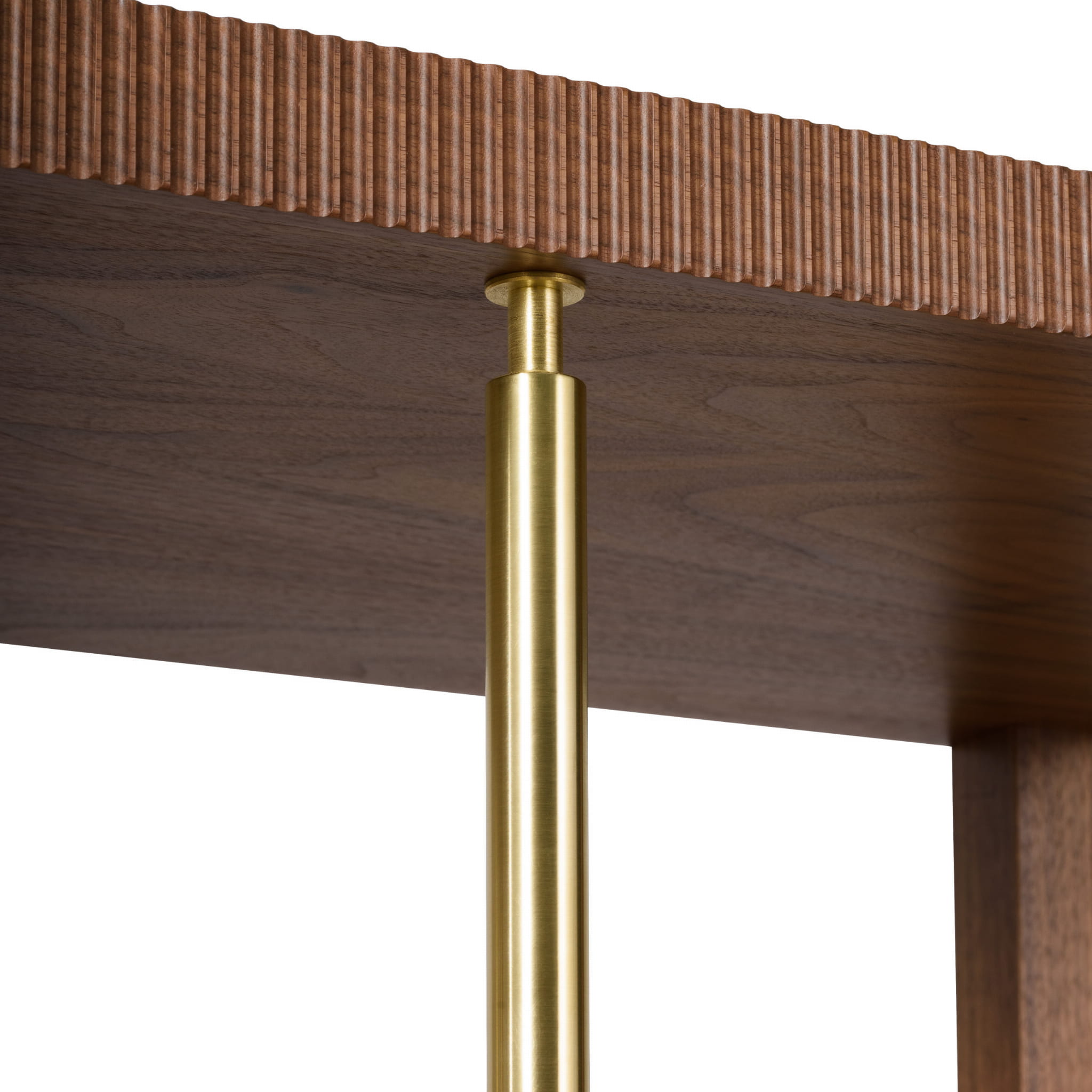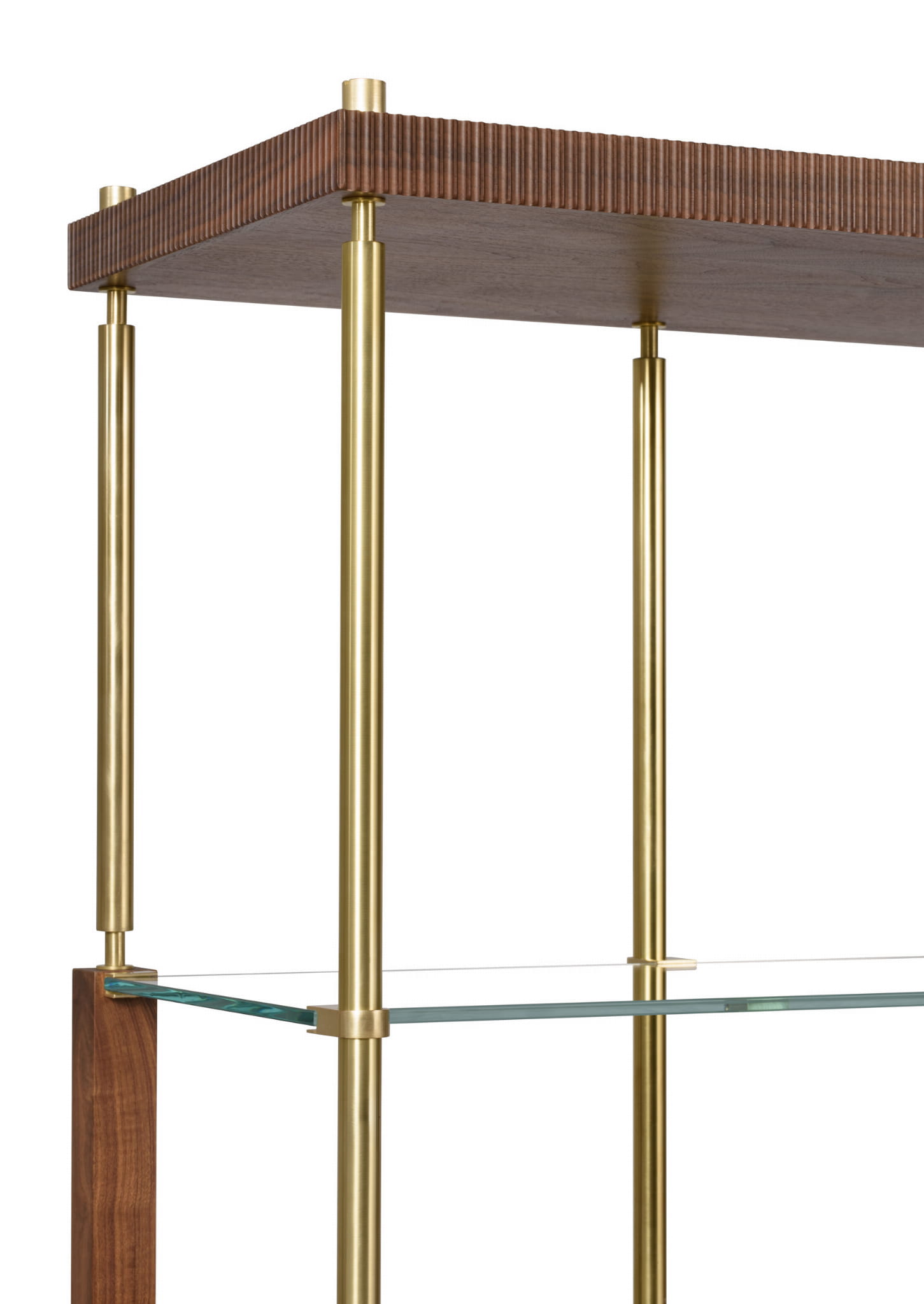 Regał inspirowany stylem Art Deco. Charakterystyczne, delikatne elementy mosiężne wraz z frezowanym drewnem nadają całości elegancji.