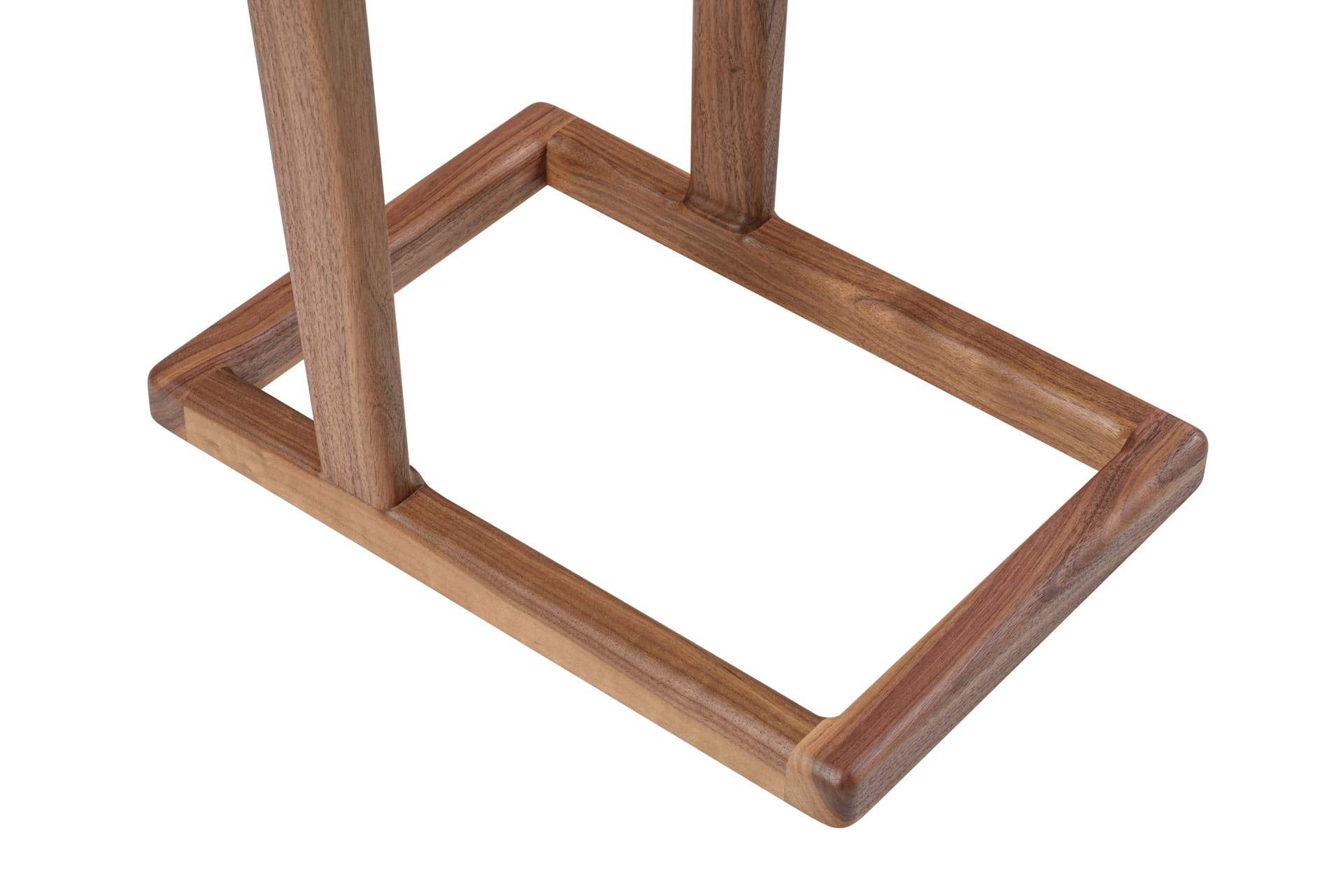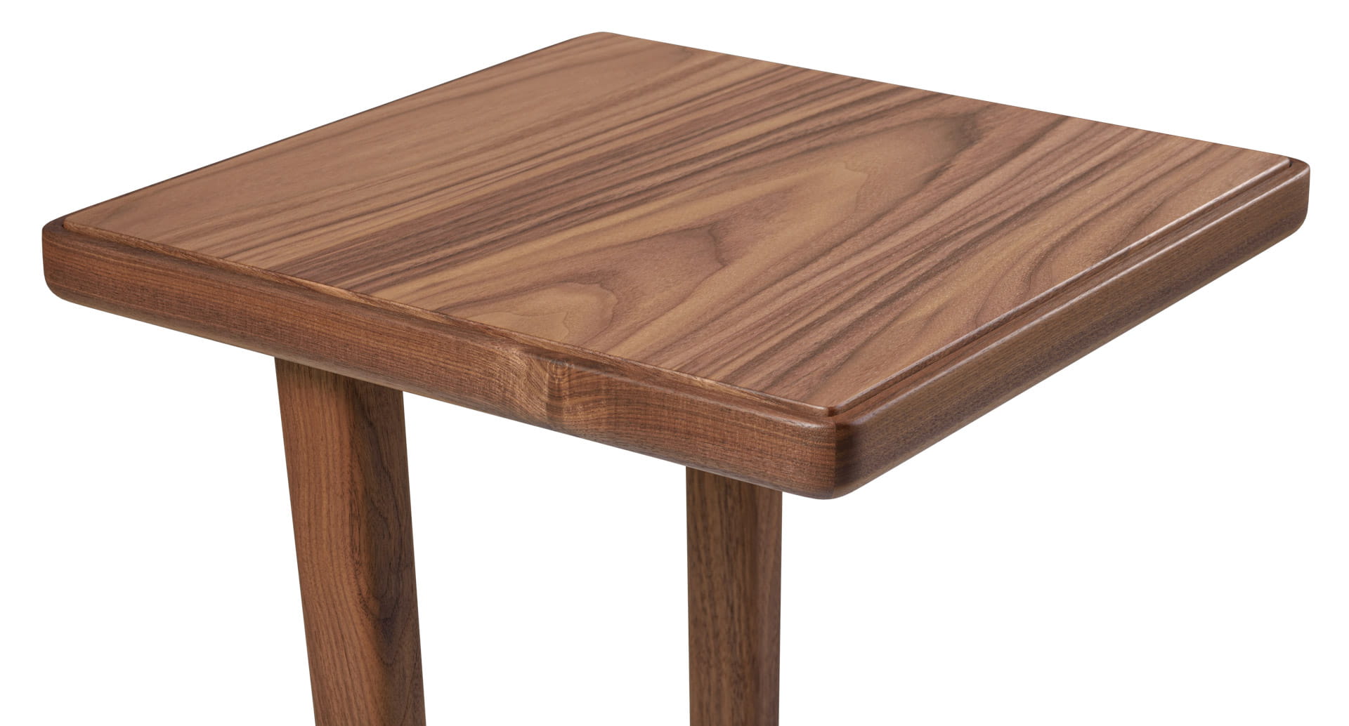Kwadratowy stolik w stylistyce mebli skandynawskich z podstawą i nogami z litego drewna. Blat stolika wykonany jest z forniru. Prosta i jednocześnie oryginalna forma mebla, charakteryzującego się zaokrąglonymi krawędziami i gładkimi powierzchniami. Idealnie sprawdzi się w nowoczesnych wnętrzach u osób ceniących meble wykonane z naturalnego, wysokiej jakości drewna.