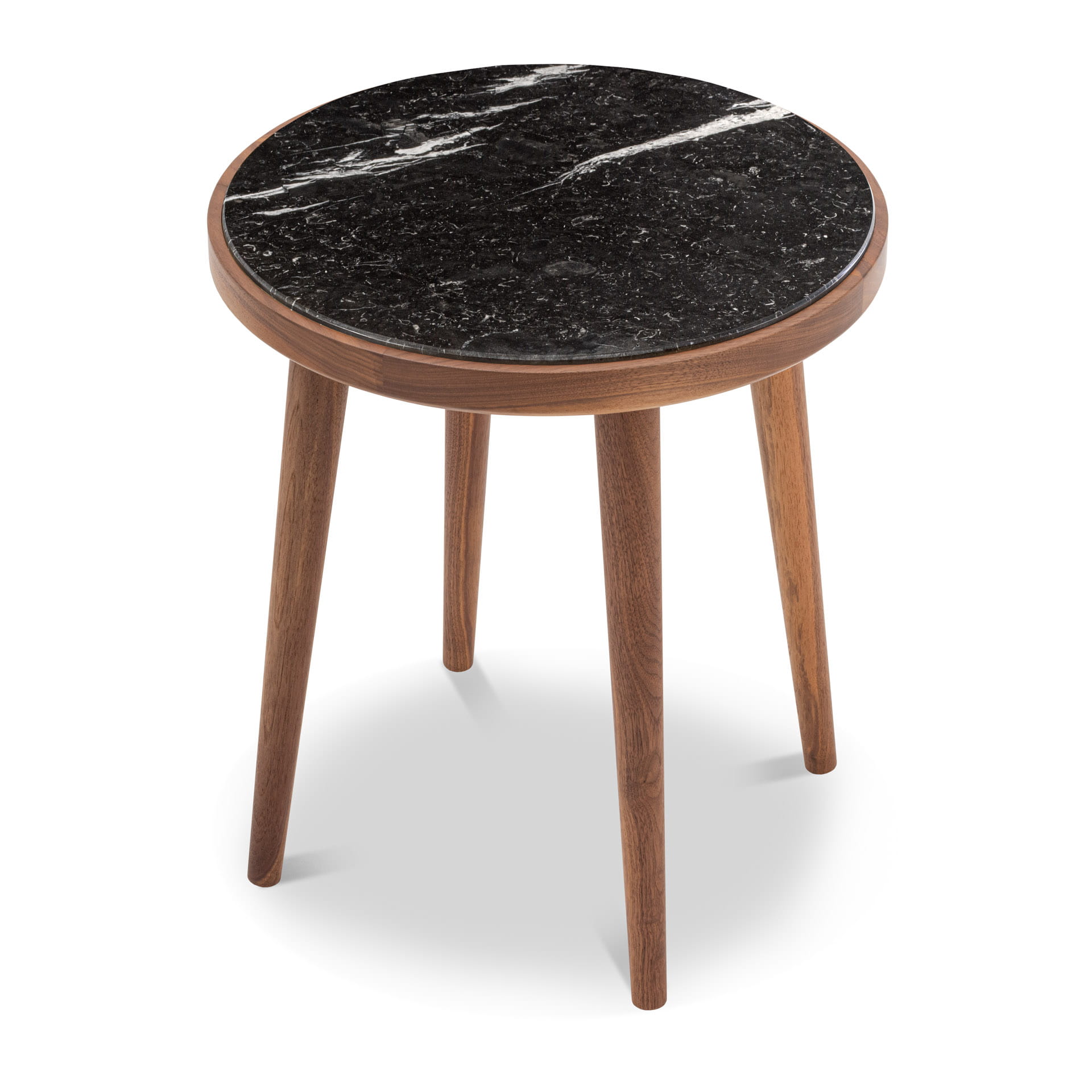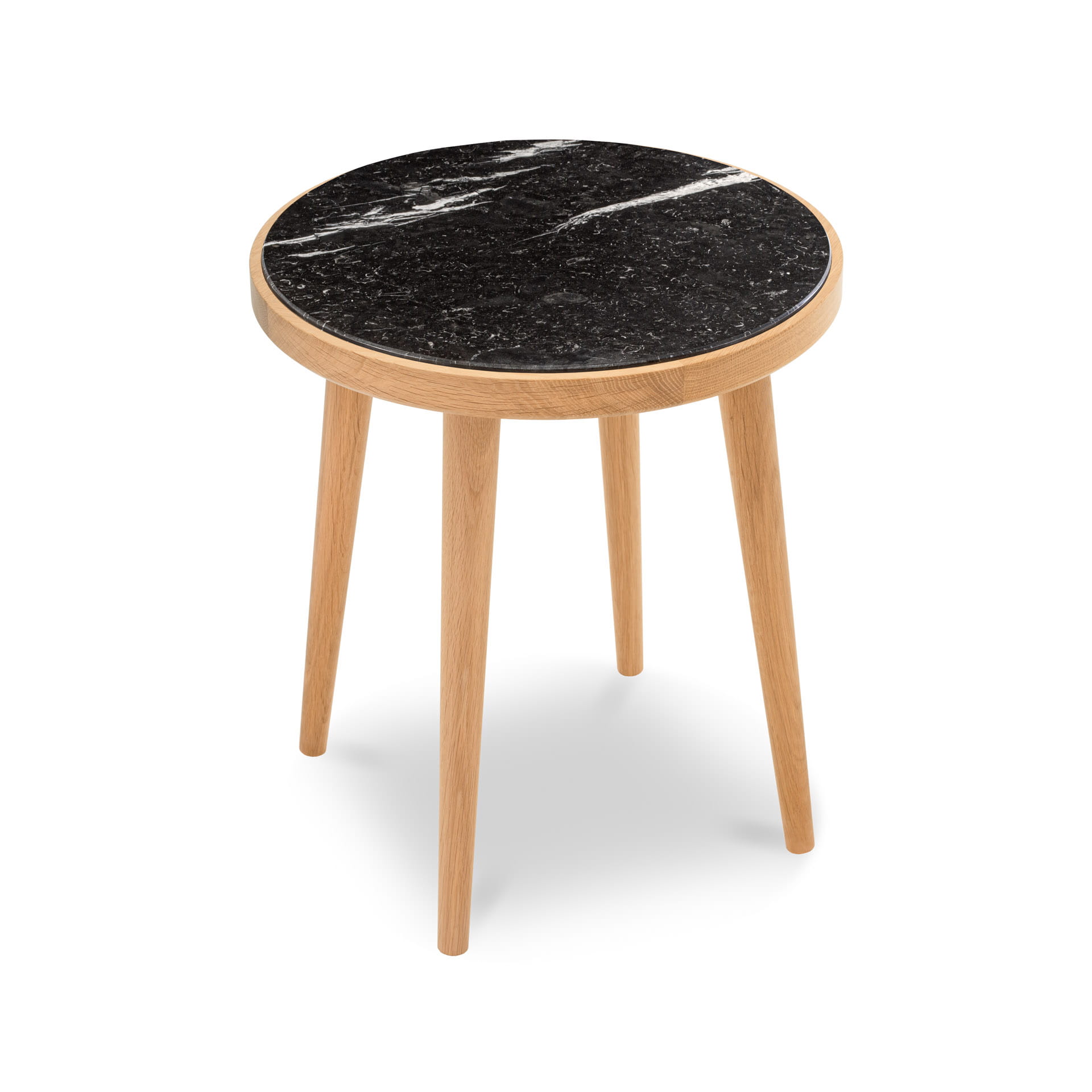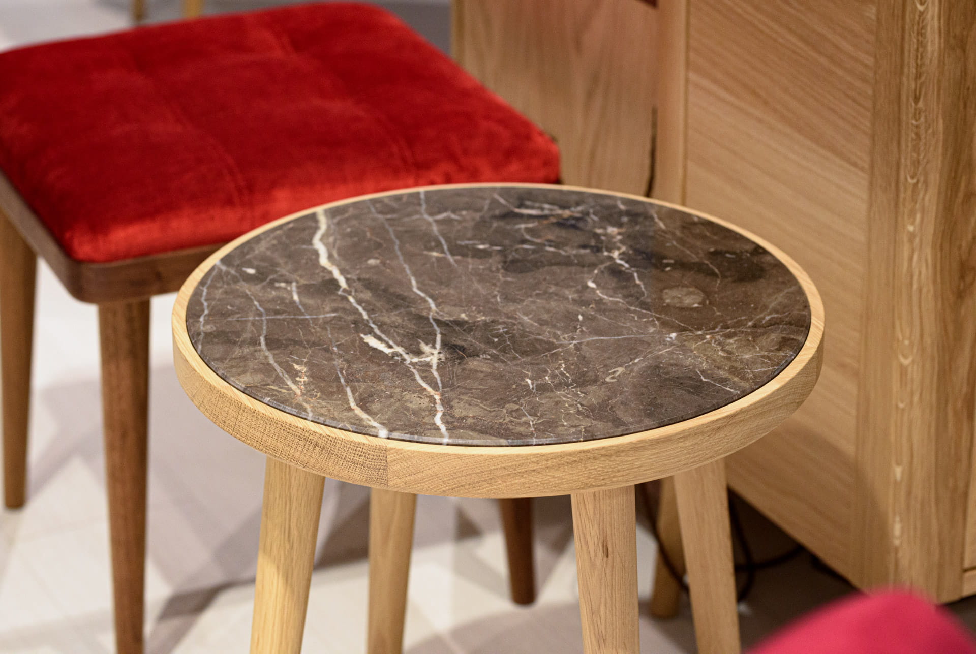Blat stolika występuje w dwóch opcjach: marmurowej lub drewnianej.